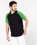 Contrast raglan sleeves with jersey piping. Knitted collar with taped neck. Contrast raglan sleeves with contrast piping at armholes. Two matching button placket. Twin needle finishing.