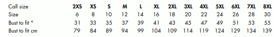XS S M L XL 2XL 3XL