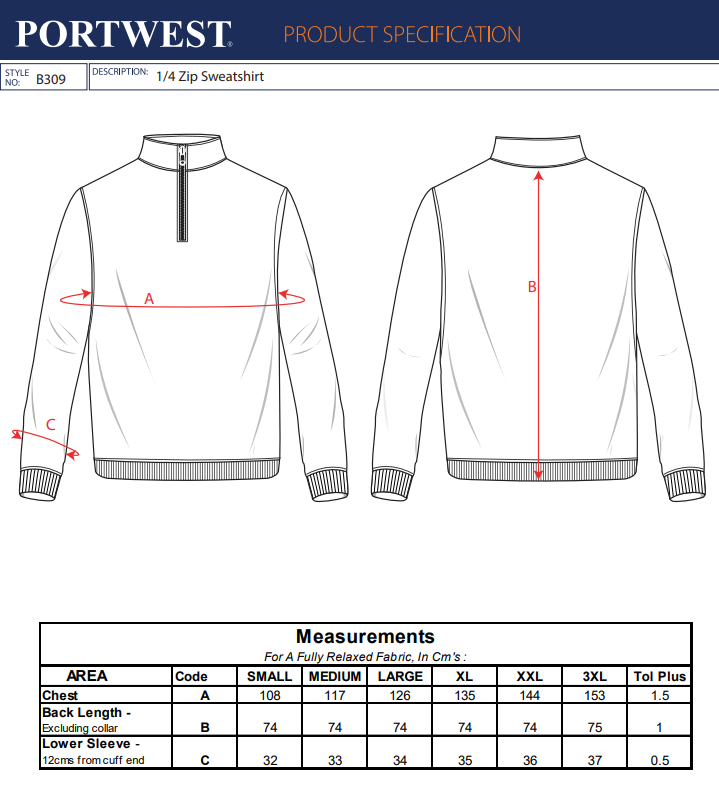 Portwest B309 Sorrento Zip Neck Sweatshirt B309