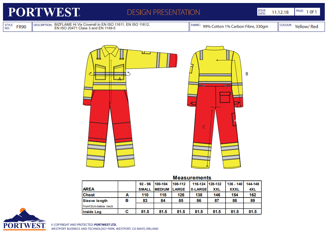 Datasheet - https://www.portwest.com/products/view/FR90/YER