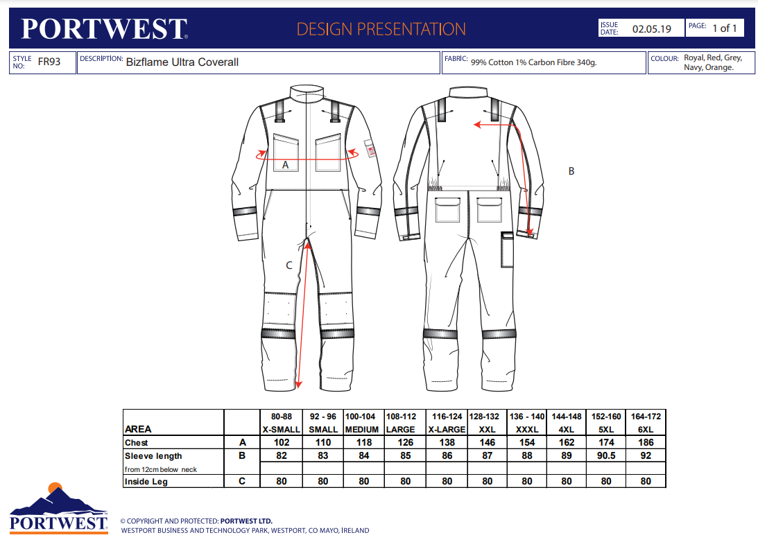Datasheet - https://documents.portwest.com/datasheet.php?style=FR93&lang=GB&itemcol=FR93NAR&facility=902