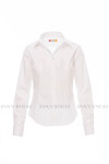 Women’s fine weave combed cotton fitted shirt, pleats at the front and back, Italian-style collar, tailored cuff with 2 buttons and button hole, stitched placket with matching buttons. With yoke,
